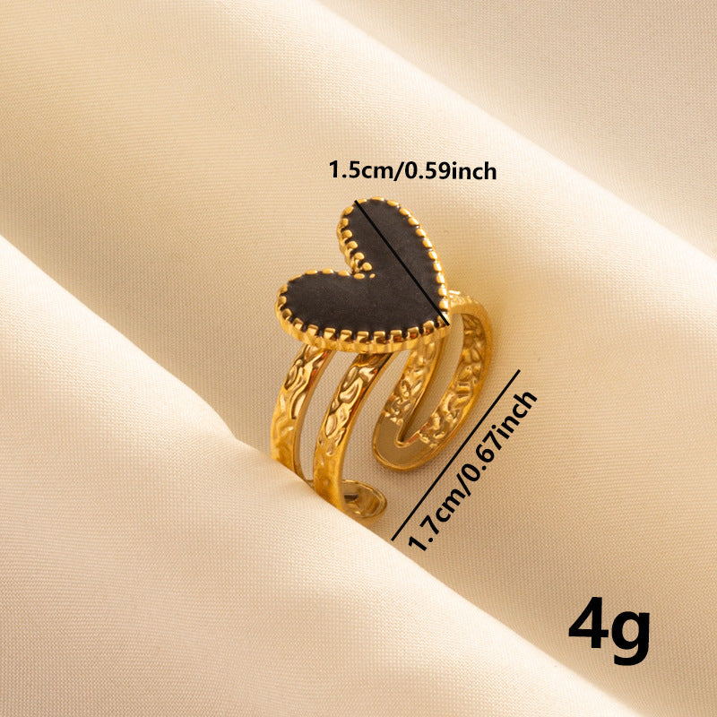 304 Stainless Steel Heart-shaped Drip Open Ring For Women