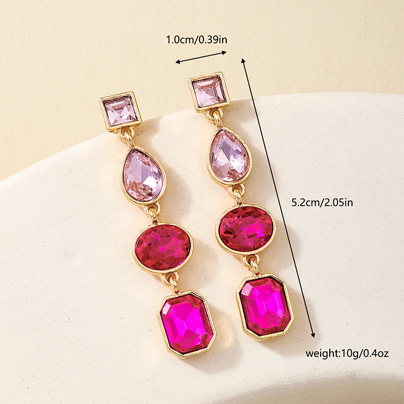 Metal Color Rhinestone Ear Studs Female Geometric Water Drop