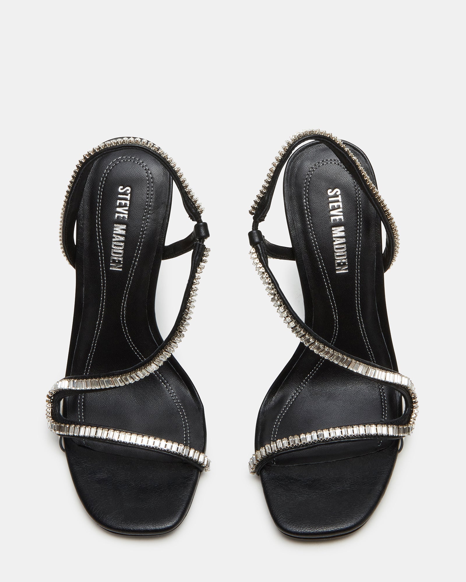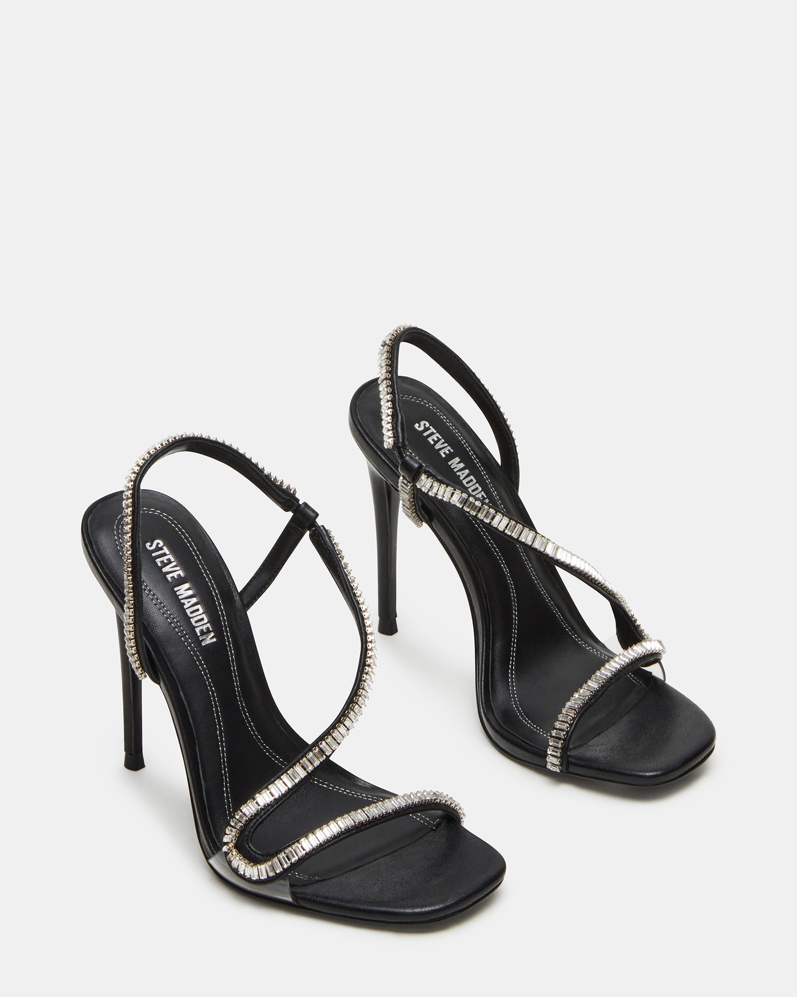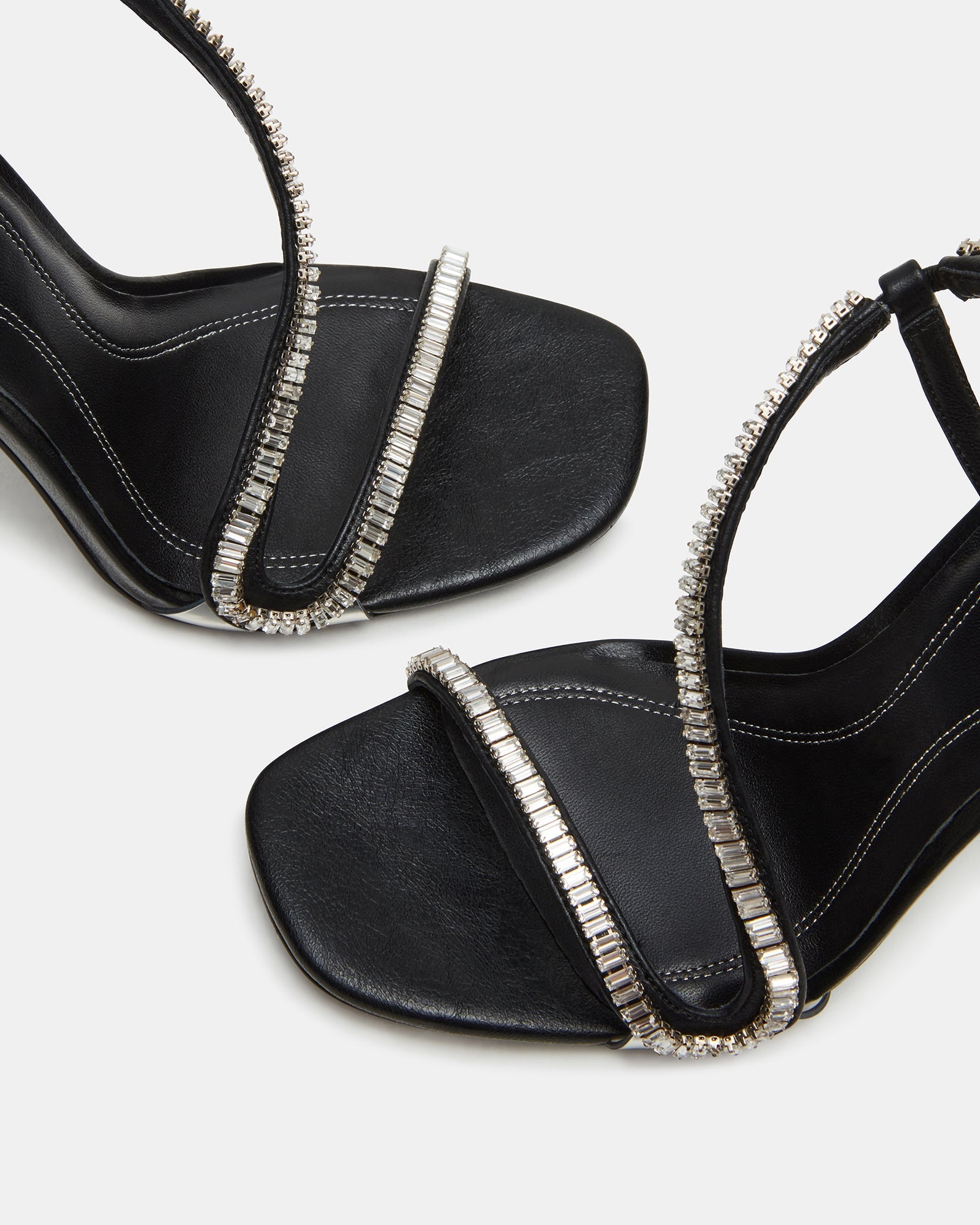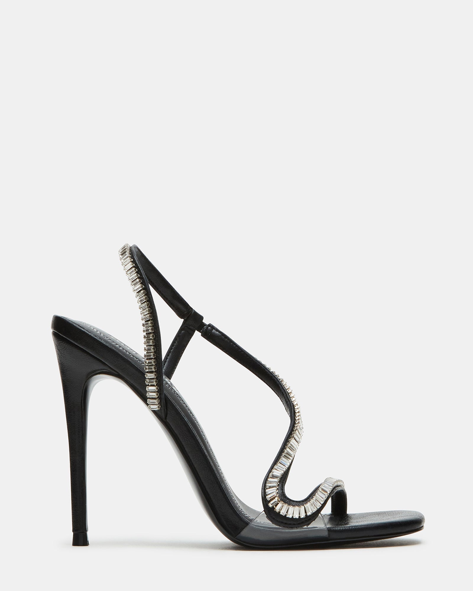 Expertly designed with a rhinestone stiletto heel and a unique embellished strappy design, the NESSA shoes combine fashion and function. The square toe provides added comfort and style, making these shoes perfect for any occasion. Elevate your look with these eye-catching heels.