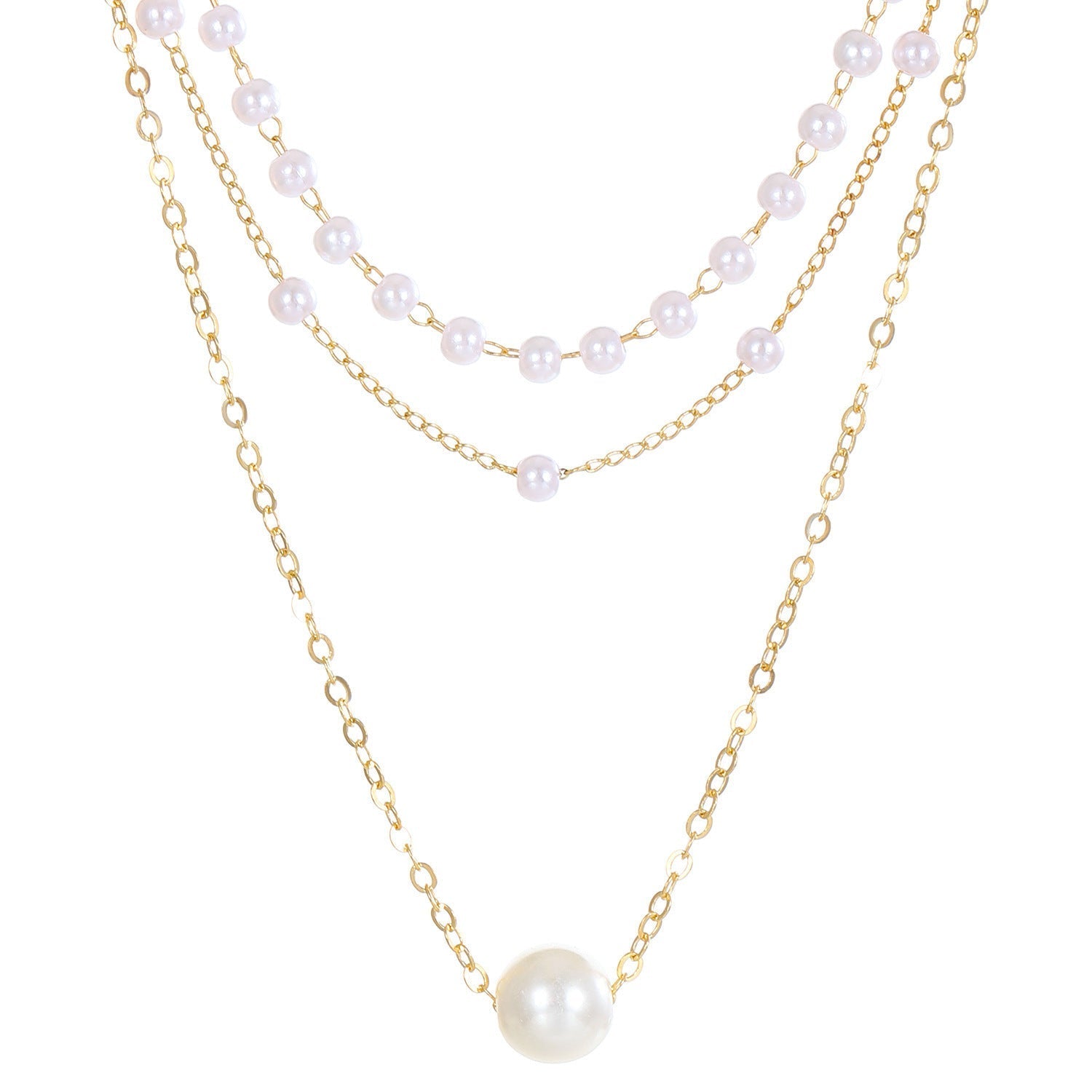 Pearl Chain Pendant Three-layer Necklace For Women Twin All-matching