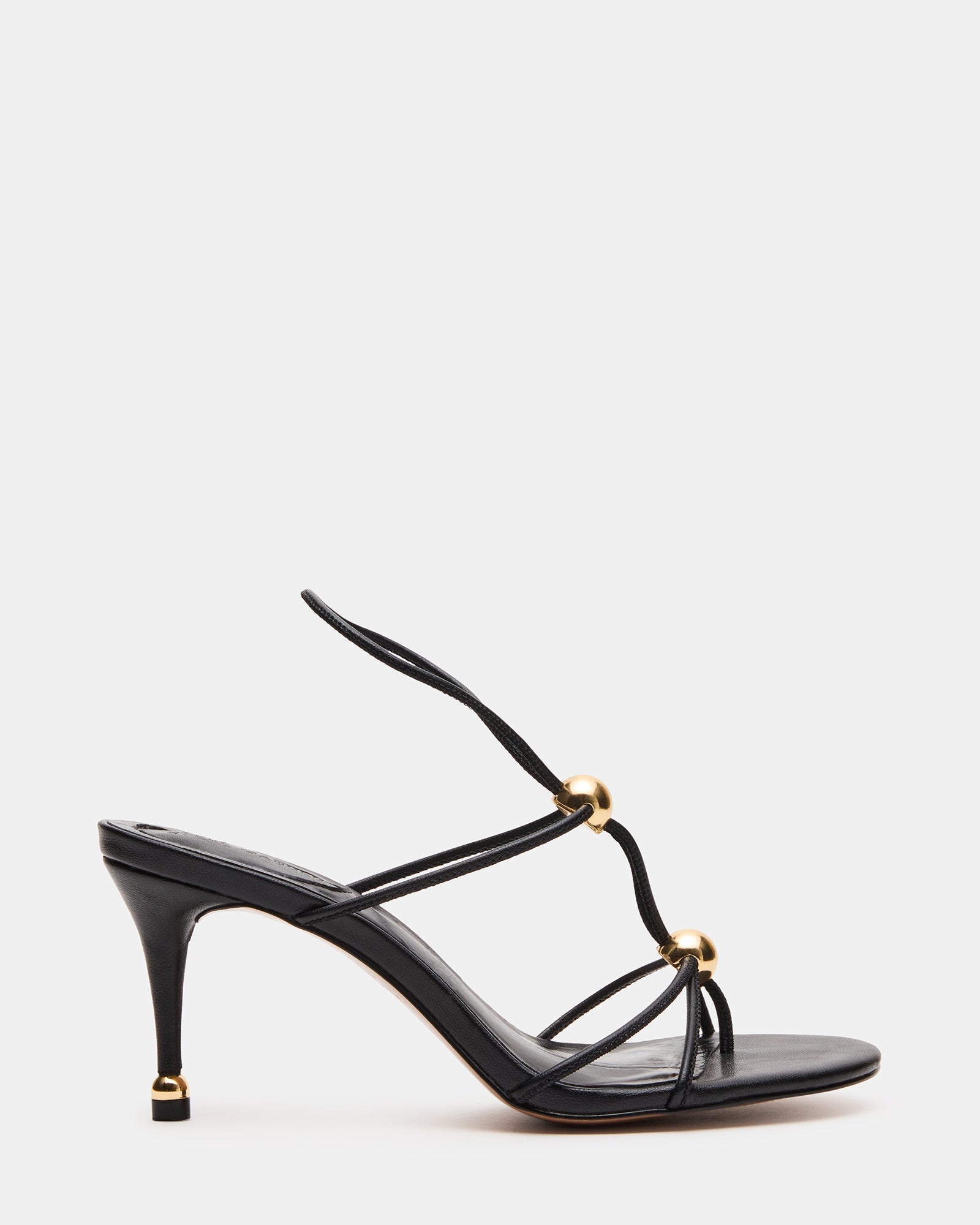 Introducing the RAMOS, the perfect combination of elegance and edge. Featuring a strappy stiletto heel adorned with gold hardware accents, these shoes will elevate any look. Step out in style and confidence with these stunning heels.