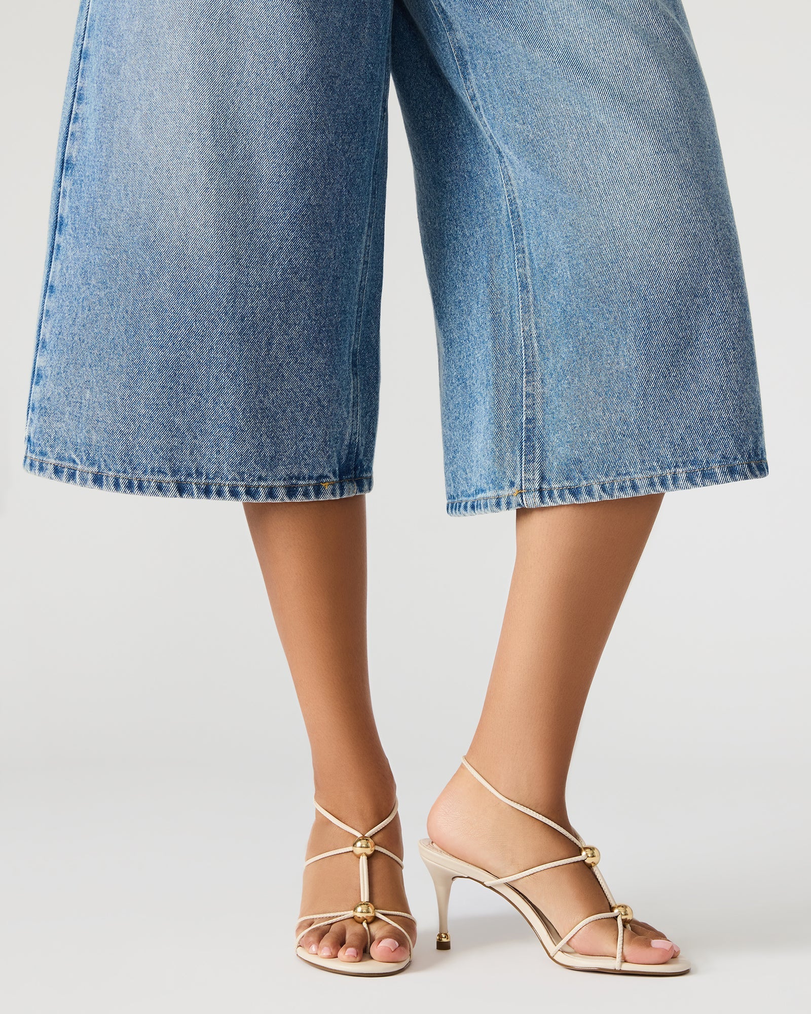 Introducing the RAMOS, the perfect combination of elegance and edge. Featuring a strappy stiletto heel adorned with gold hardware accents, these shoes will elevate any look. Step out in style and confidence with these stunning heels.