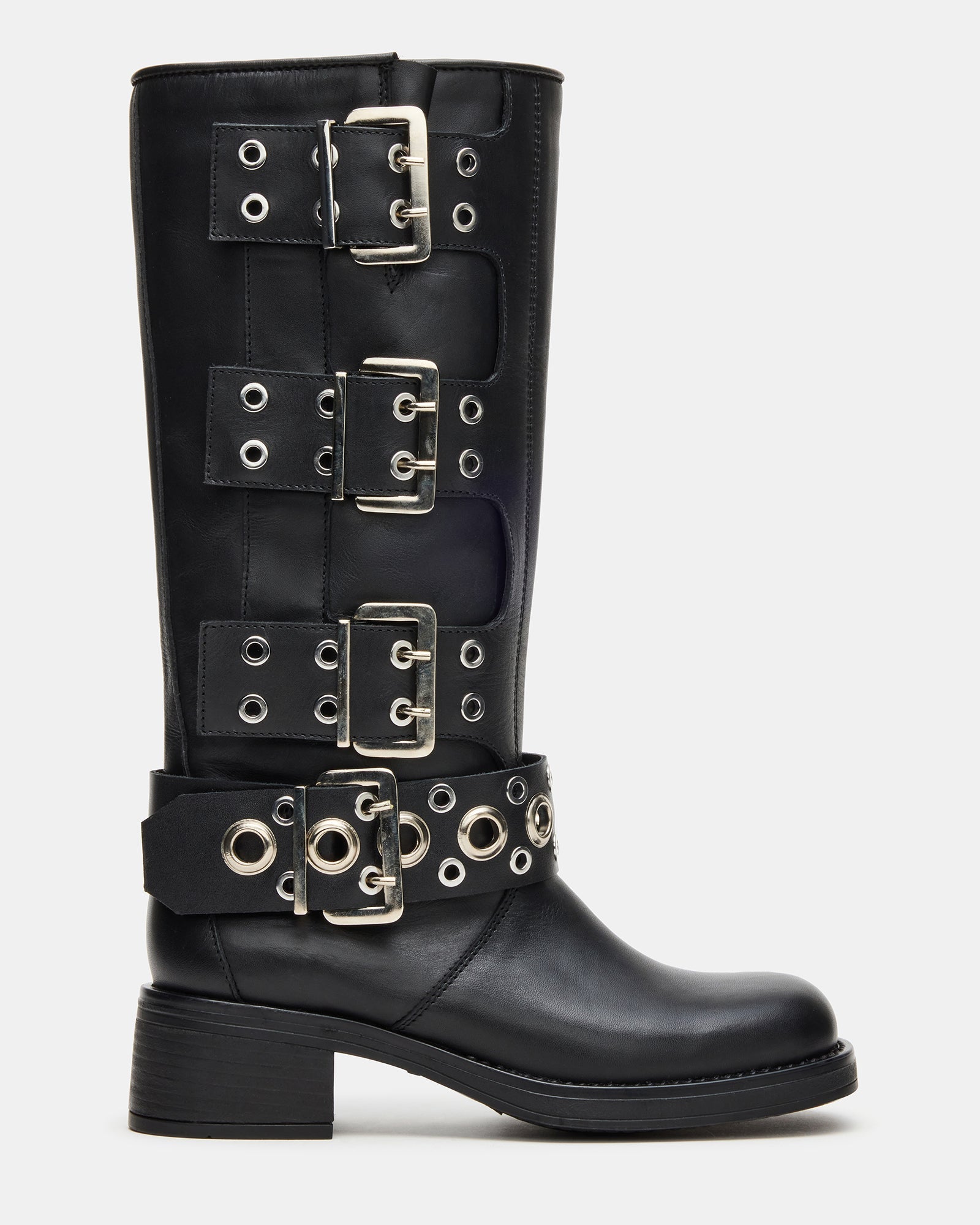 The RAMPAGE boot features a striking square-toe design enhanced with bold grommet details and a secure buckle, embodying the essence of moto-inspired footwear. Expertly crafted for both style and durability, this boot offers a contemporary edge while ensuring lasting comfort and wearability. Ideal for those who appreciate refined, statement-making boots.