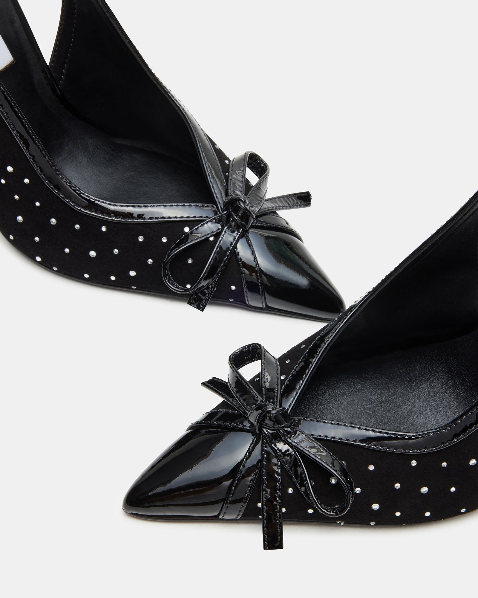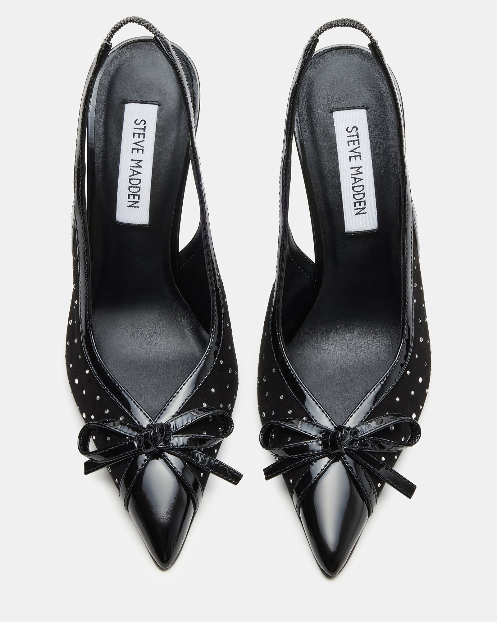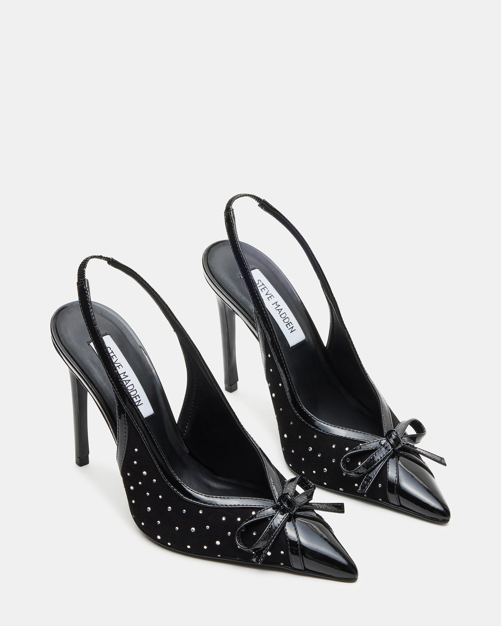 Elevate your style with our Sleek stiletto heels. Featuring a pointed toe and slingback design, these heels add a touch of sophistication to any outfit. The elegant bow and rhinestone details add a touch of sparkle, making you stand out in any crowd.