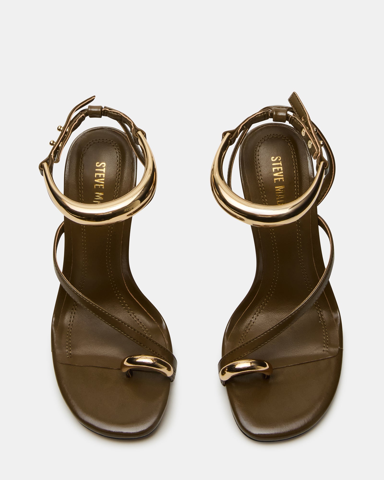 Step into style with the TIA stiletto heel. With daring gold hardware accents and a strappy design, this shoe will elevate any outfit. Unleash your boldness and conquer the day in these statement heels!