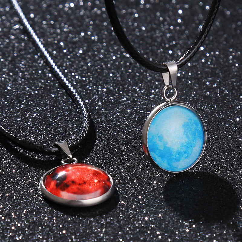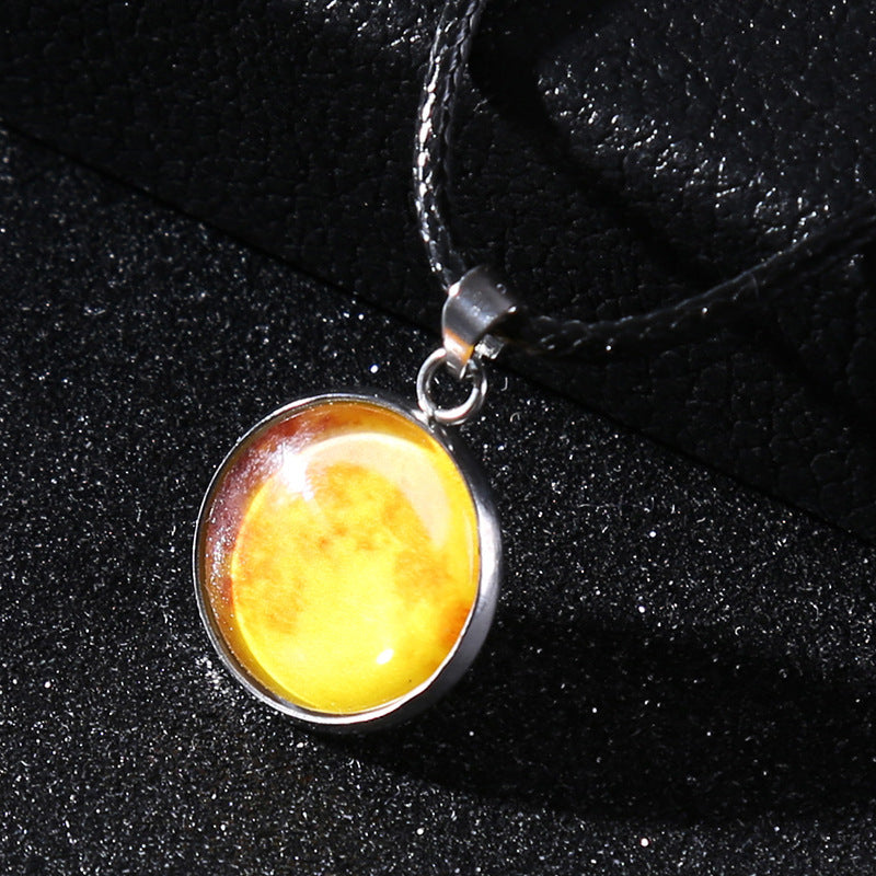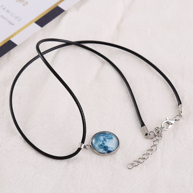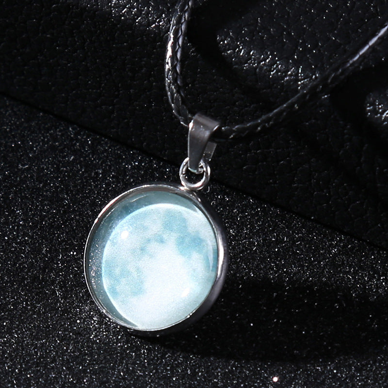 Time Stone Christmas Moon Night Sky Luminous Alloy Pendant Necklace