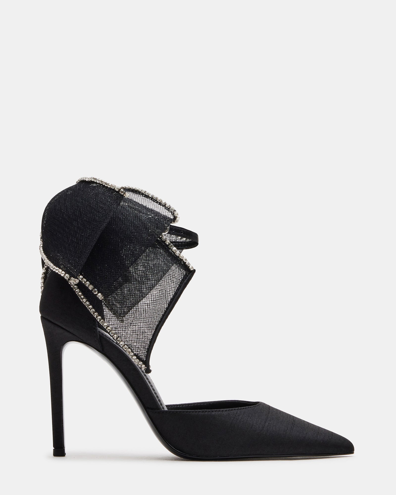 Indulge in luxury with our TIMELESS heel. Its bow tulle detail, rhinestone trimming, and pointed toe add a touch of elegance. Designed as a pump with a satin heel, this shoe exudes sophistication and style. Walk down the aisle in elegance and comfort.