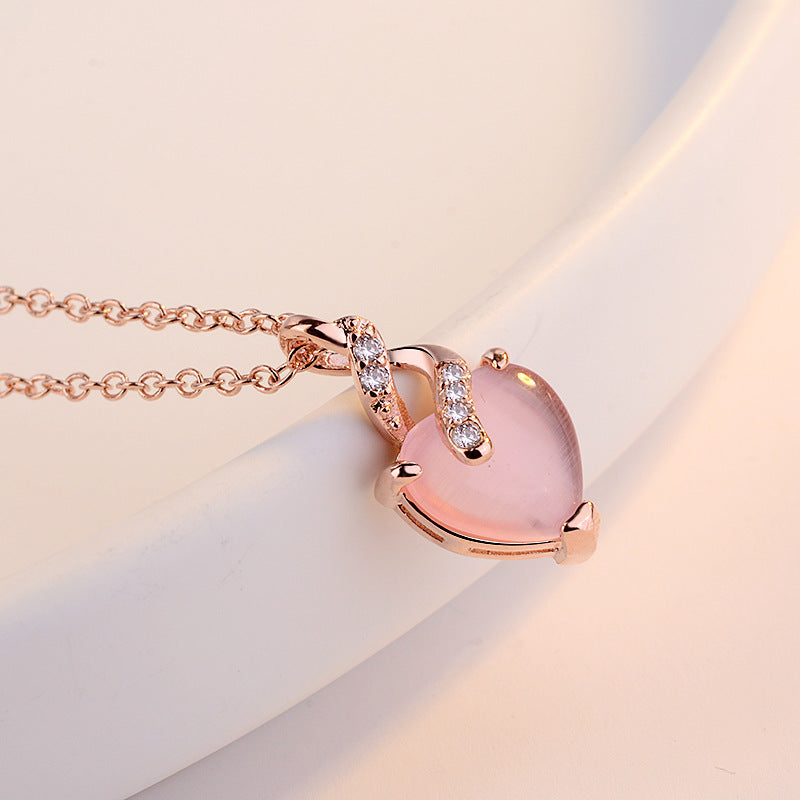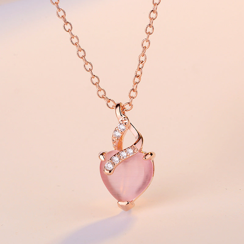 Women's Heart-shaped Pink Crystal Synthetic Pendant Necklace